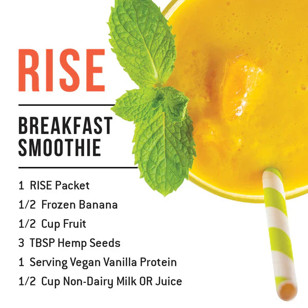 RISE contains SPECTRA™ and S7™ (two plant-based antioxidant and energy powerhouse blends), PQQ (pyrroloquinoline quinone, an antioxidant that supports mitochondrial function) and B vitamins to help the body produce long-lasting energy without caffeine.*